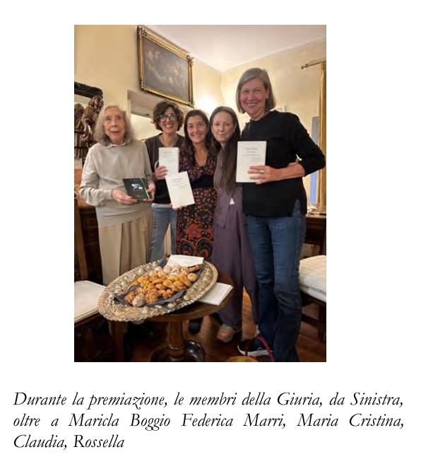 Durante la premiazione, le membri della Giuria – oltre a Maricla Boggio – sono, da sinistra: Federica Marri, Maria Cristina, Claudia, Rossella.